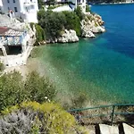 Guests can enjoy a seaside sea view from a terrace at the beachfront Infinity Blue House Skiathos villa, only 0.6 km from the Skiathitiko Spiti Traditional House.